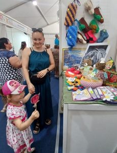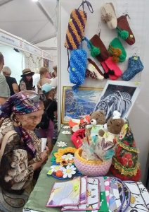 На выставке-ярмарке Красноярский комплексный центр представил изделия мастеров сотрудников учреждения и получателей социальных услуг выполненные в различных техниках: вязание, вышивание бисером, декоративно-прикладное творчество, которые можно было приобрести для себя или в подарок.